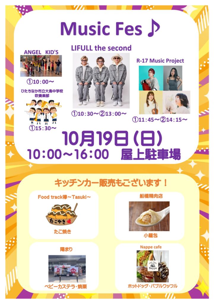 Music Fes♪@イオンタウン水戸南 屋上駐車場START : 10:30〜 (一部) 13:00〜 (二部)ADV : FreeArtist : KEN EBISAWA ※一部のみ RAY イーシス